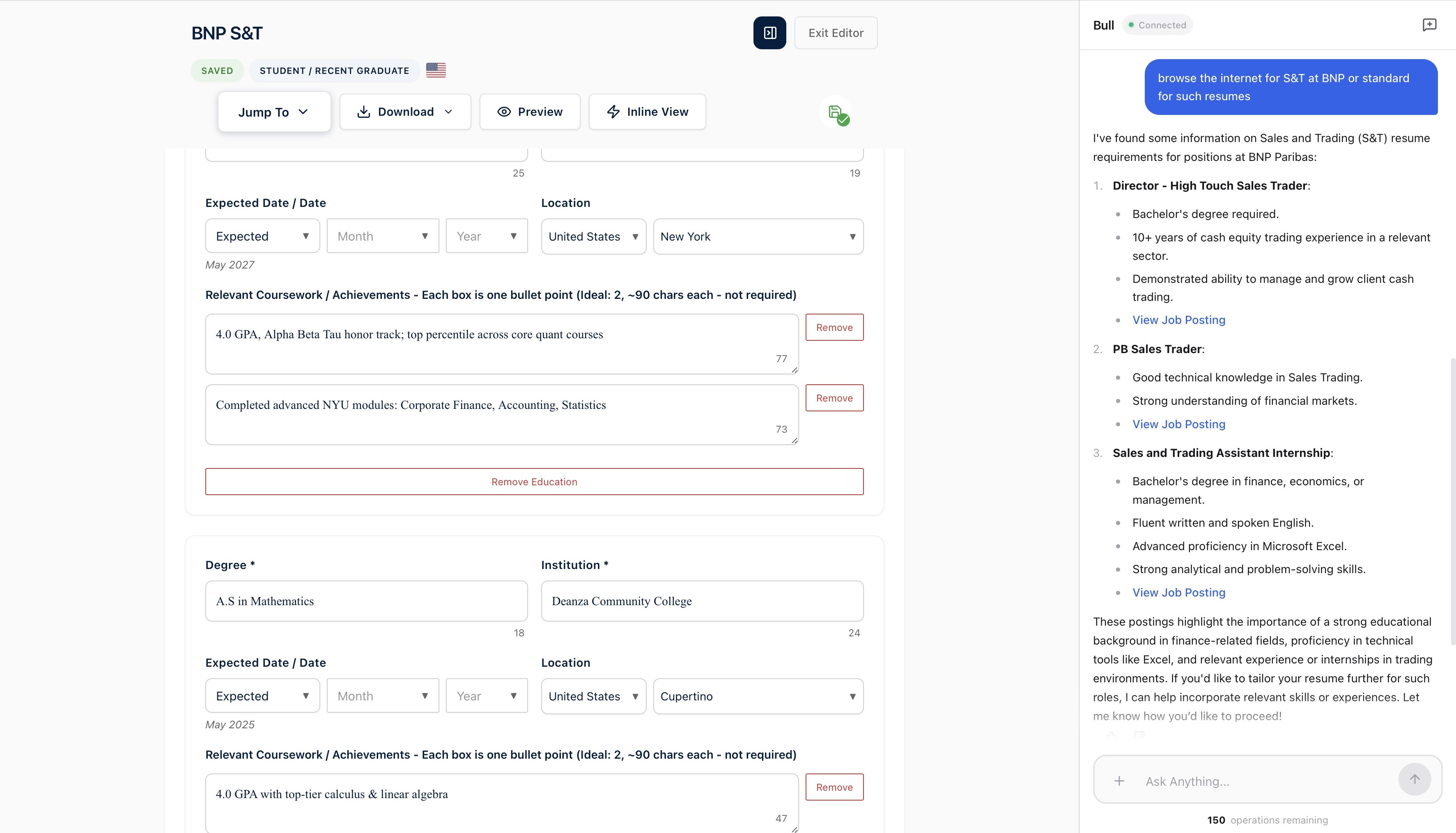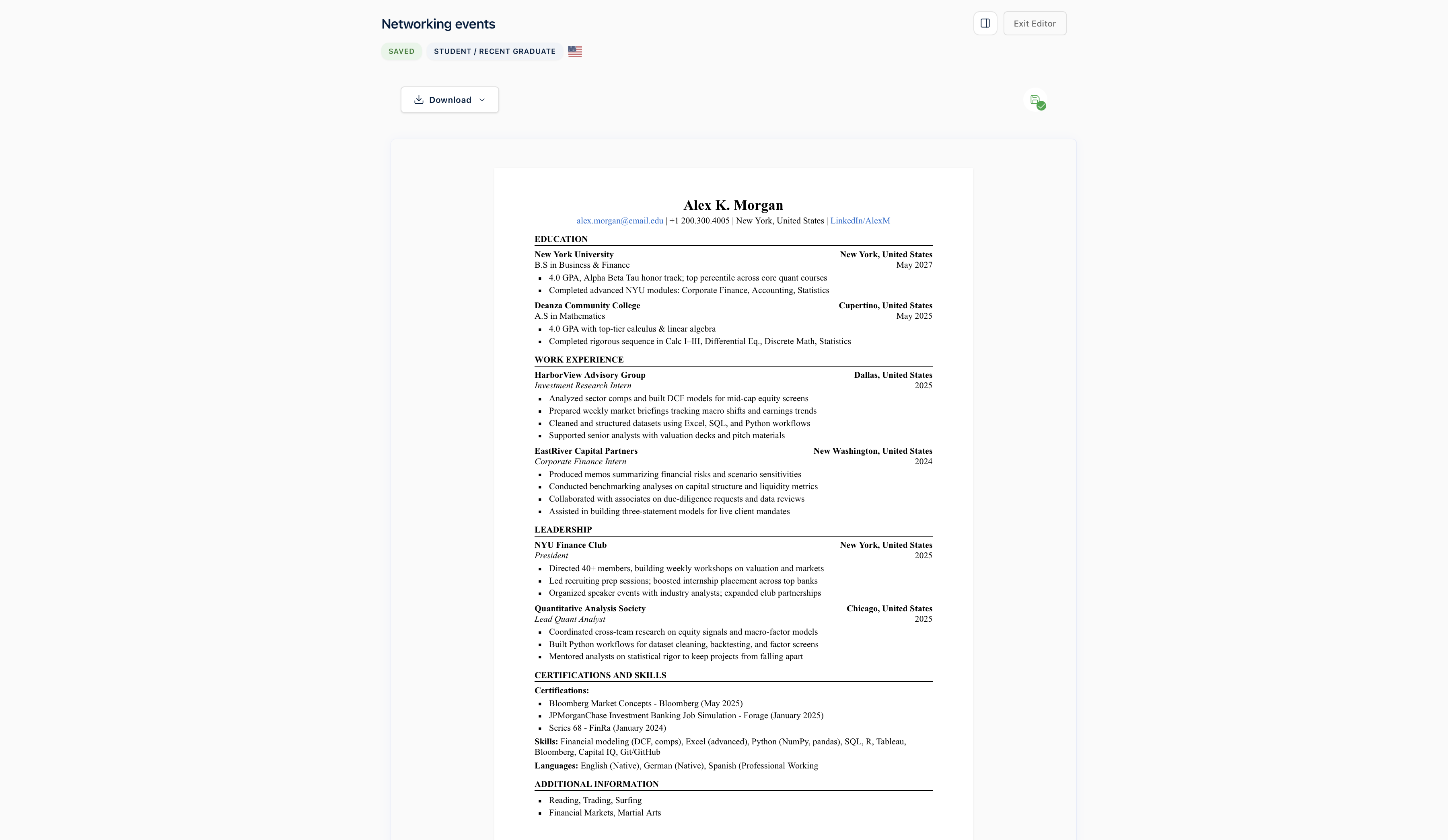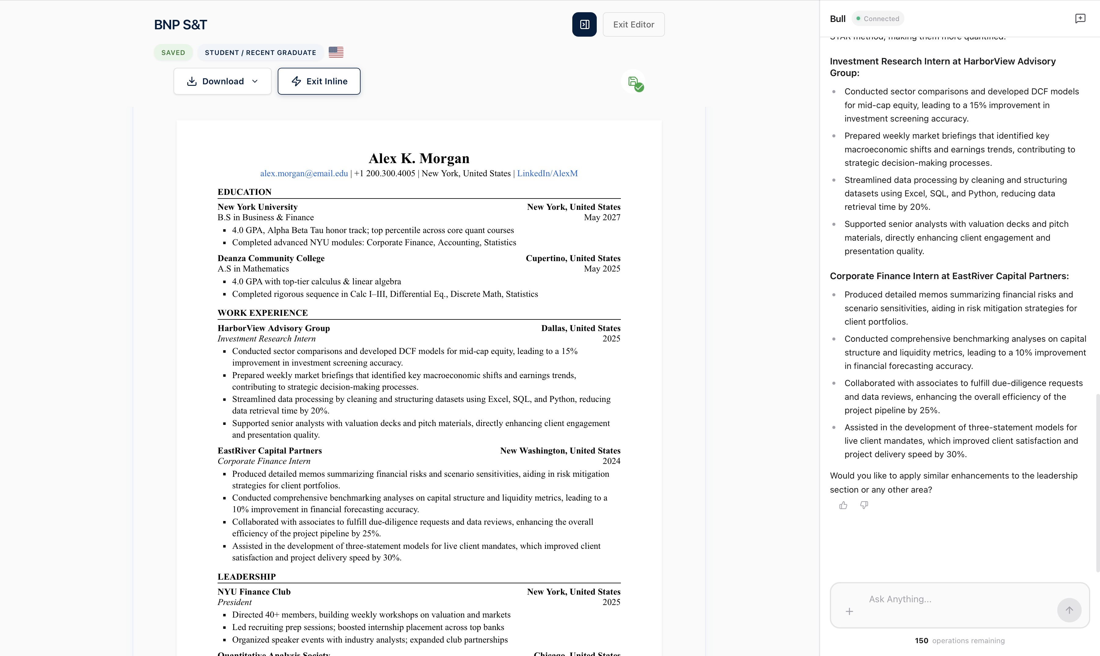 Intelligent resume building powered by AI that understands finance industry standards.